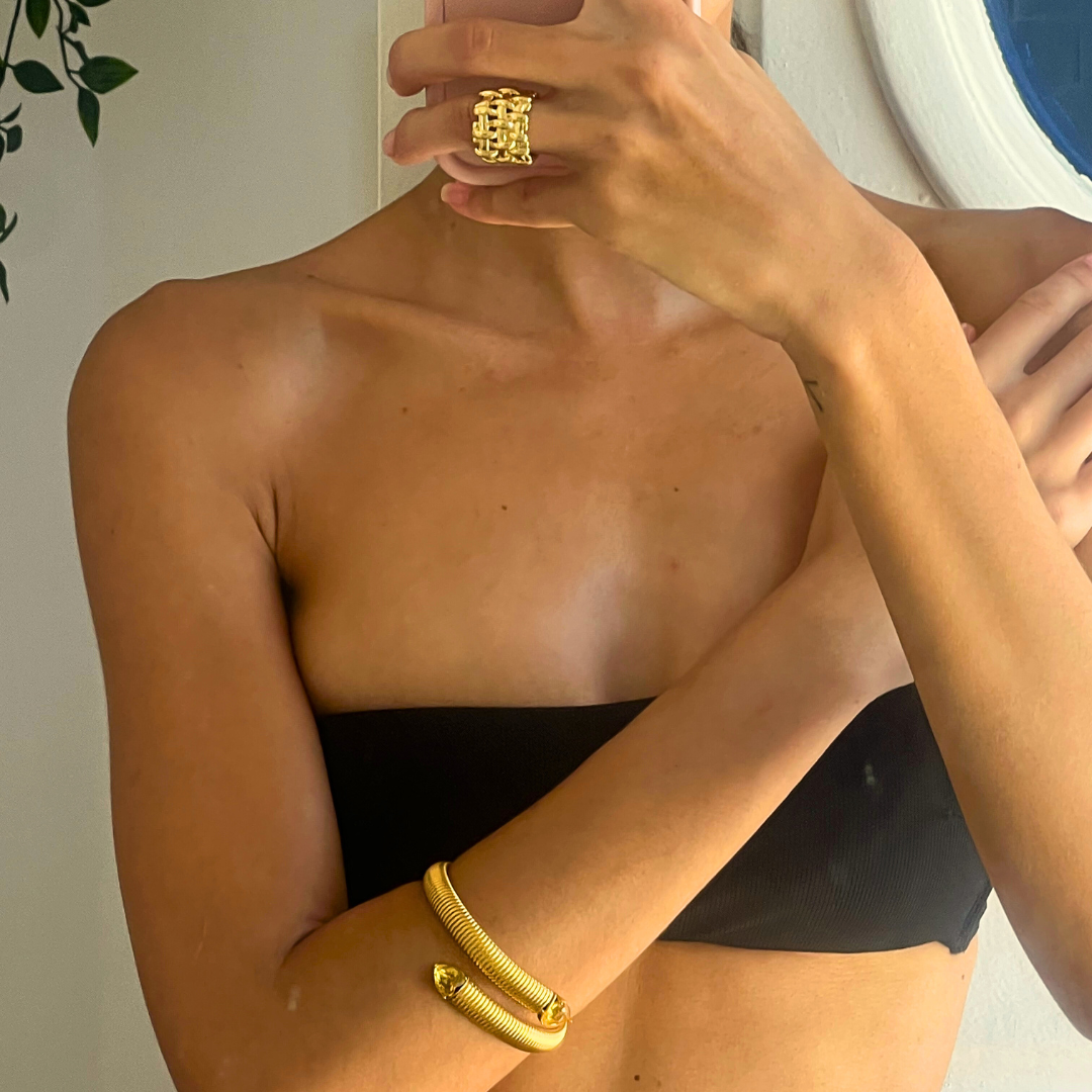 Somptueuse et élégante, elle séduit par la finesse de sa façon tissée ainsi que par sa volupté. Enfin, les boucles d'oreilles MAXIMA assorties sont également disponibles.