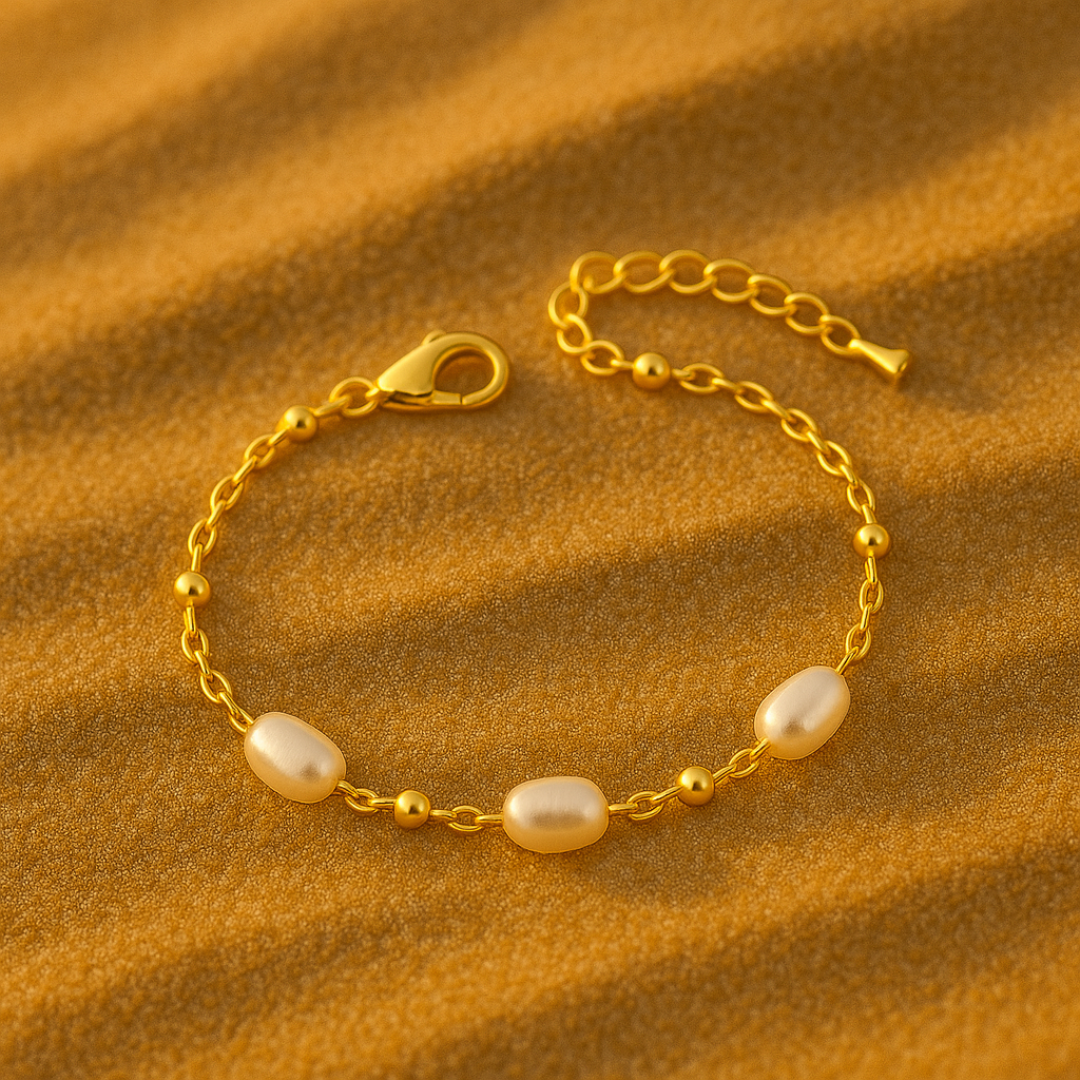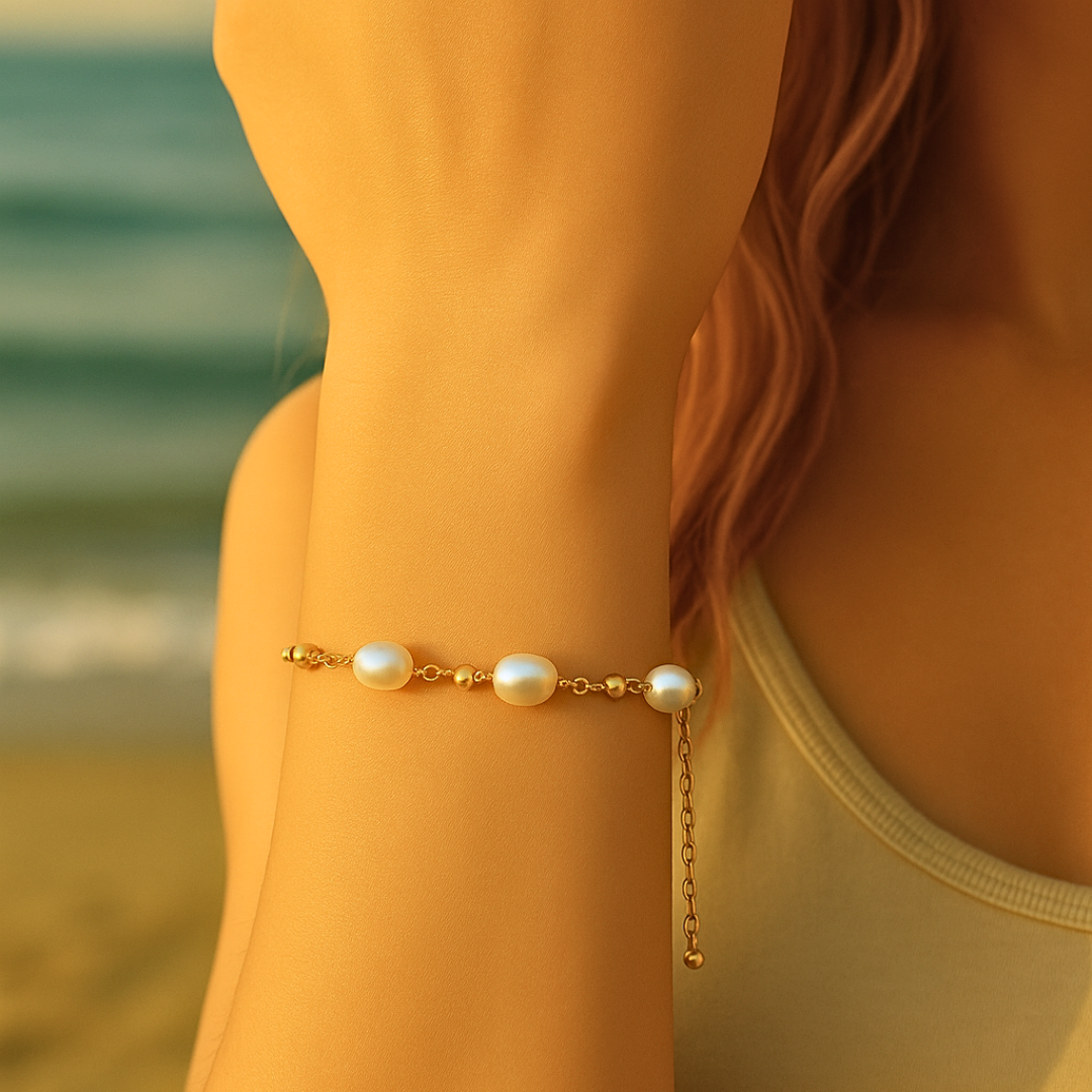 Bracelet SAMIA - Acier inoxydable plaqué or et perles d'eau douce naturelles